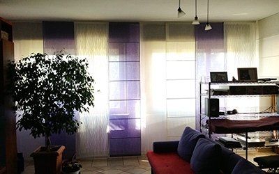 - tende a pannello - in lino e cotone, dotate di struttura a binari per lo scorrimento verticale;